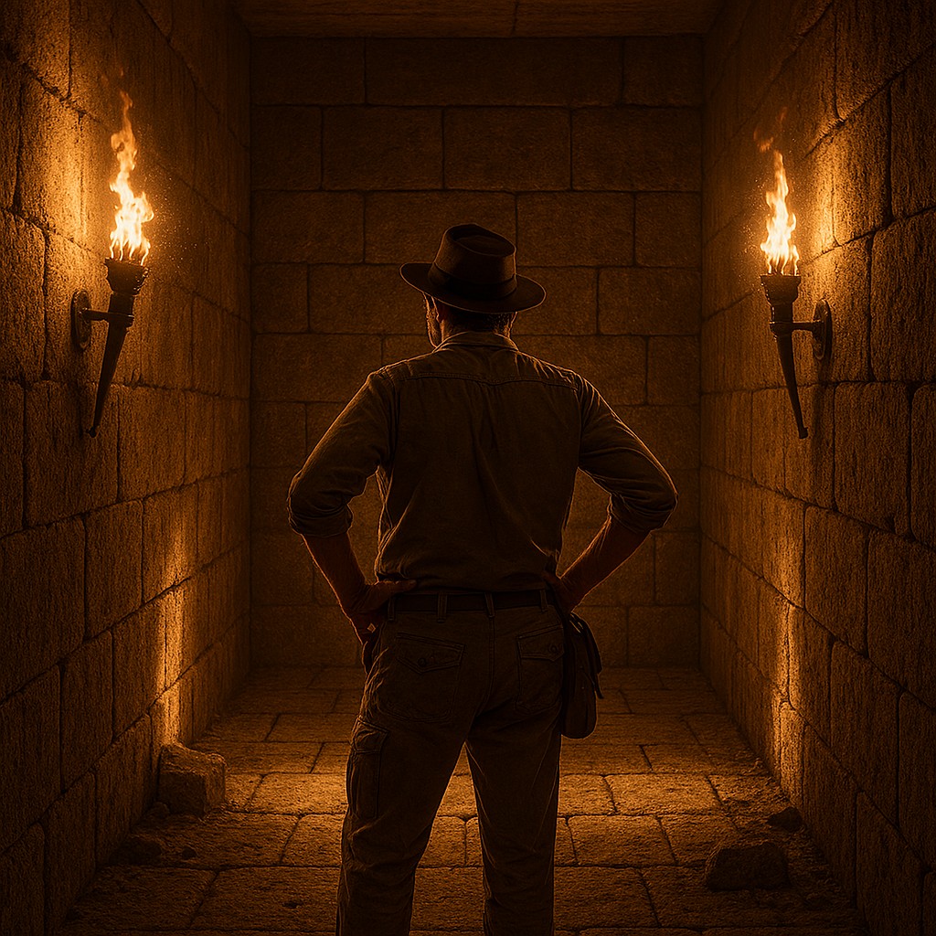 The torchlit passage leads you through twisting corridors that seem to go on forever. Eventually you reach a dead end - just solid stone. You must have taken a wrong turn.