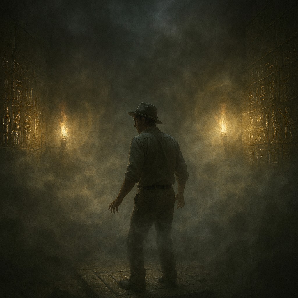 As you step on the moon plate, silver mist fills the chamber. You feel dizzy and disoriented. When it clears, you realize you are back in the burial chamber where you started.
